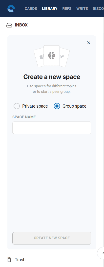 The group space creation process involves more setup than private spaces because it establishes the collaborative foundation that will support your team's research activities.