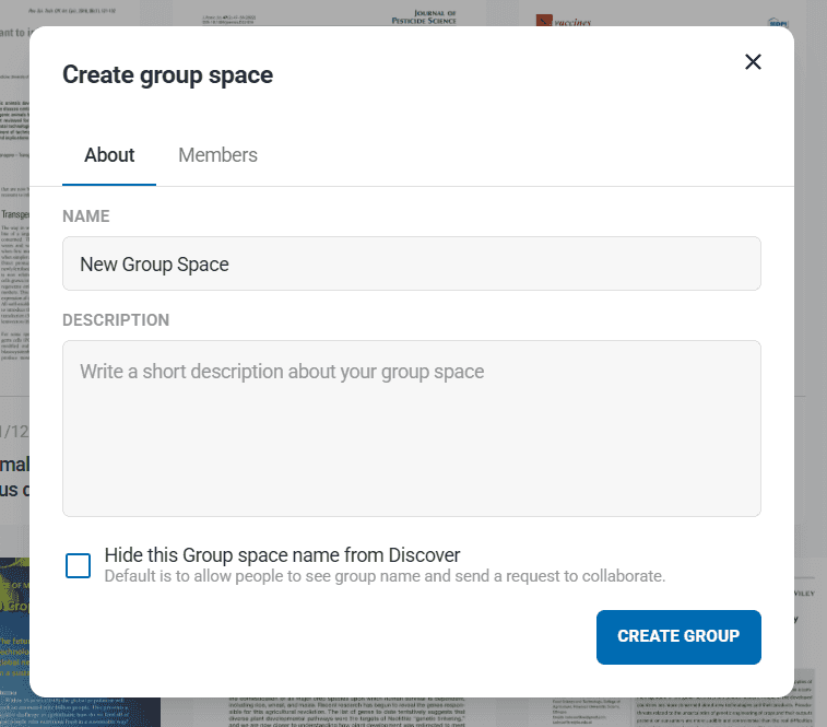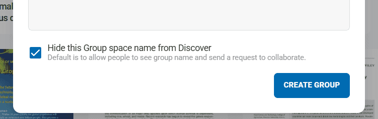 Enter a clear, descriptive name for your group space that will make sense to all potential members. Consider including the project name, research topic, or team identifier to ensure clarity over time.