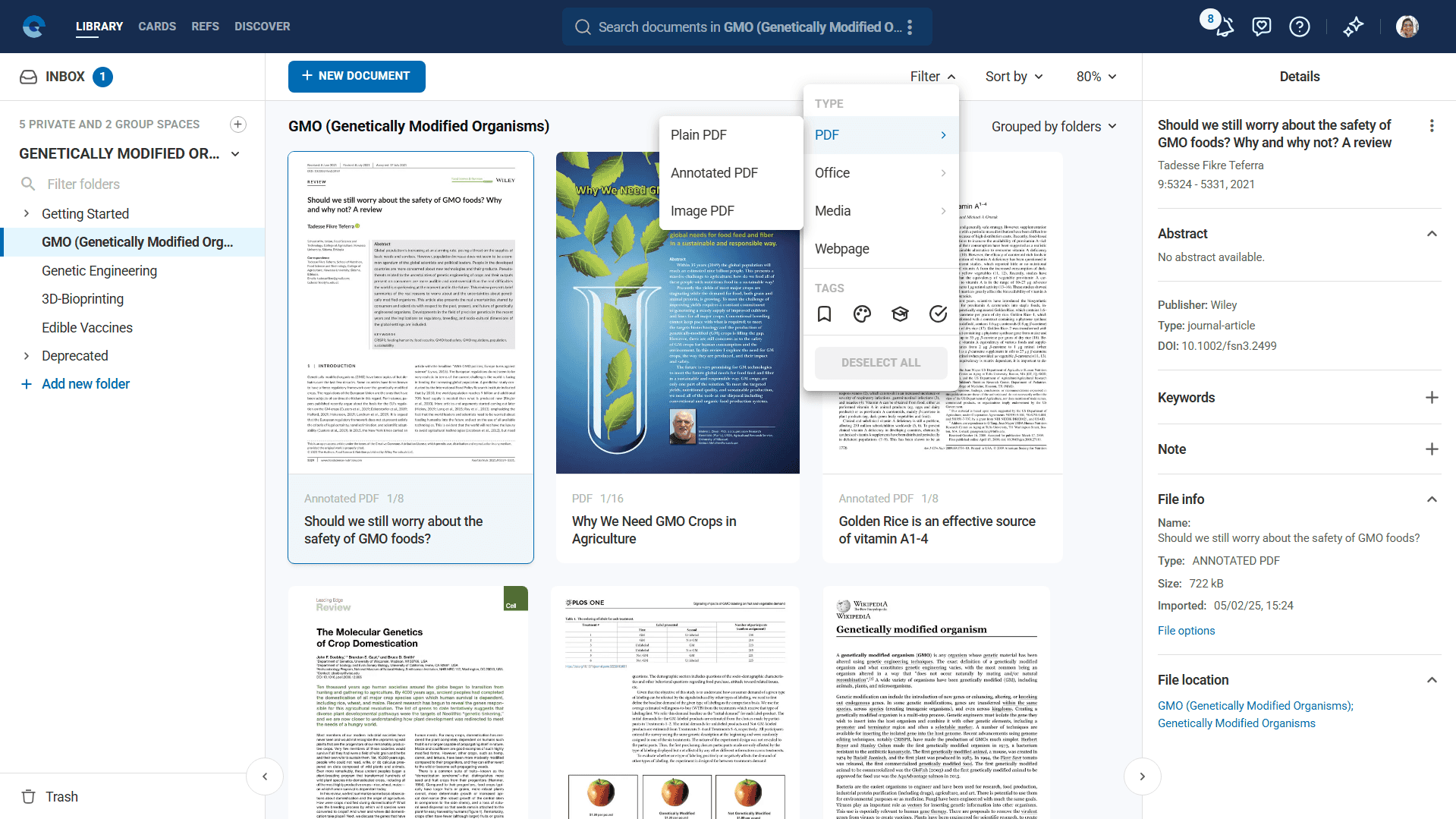 - Read documents in the advanced PDF viewer while simultaneously creating Knowledge Cards