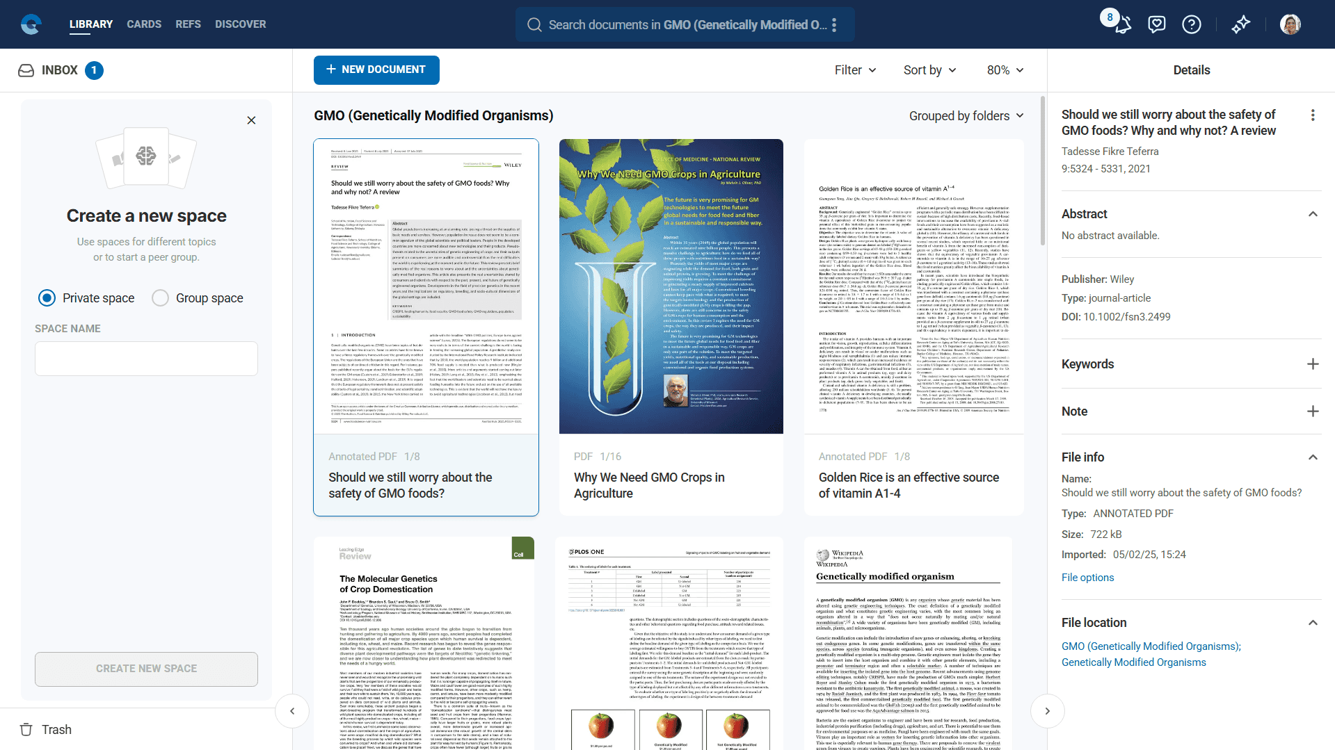- Create your first private space for organizing your research area