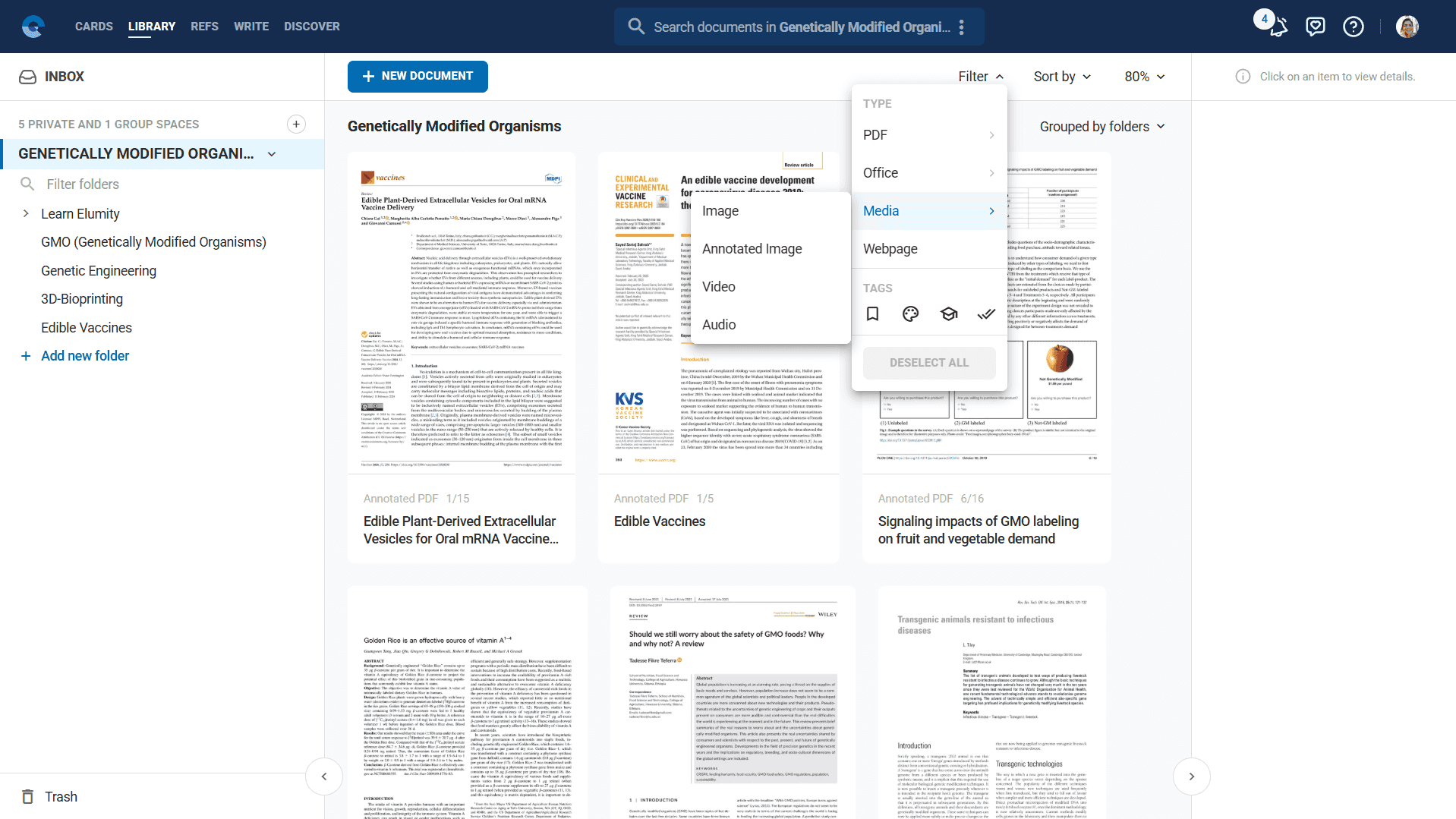 - Private Spaces: Your individual research areas with custom folder structures