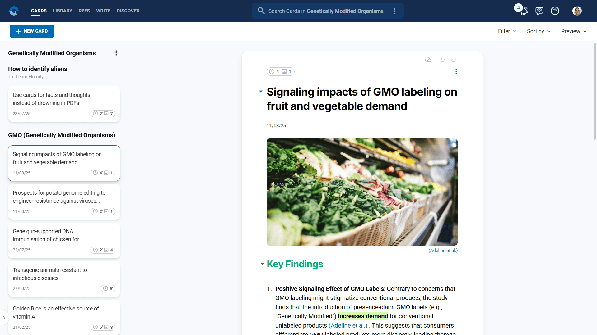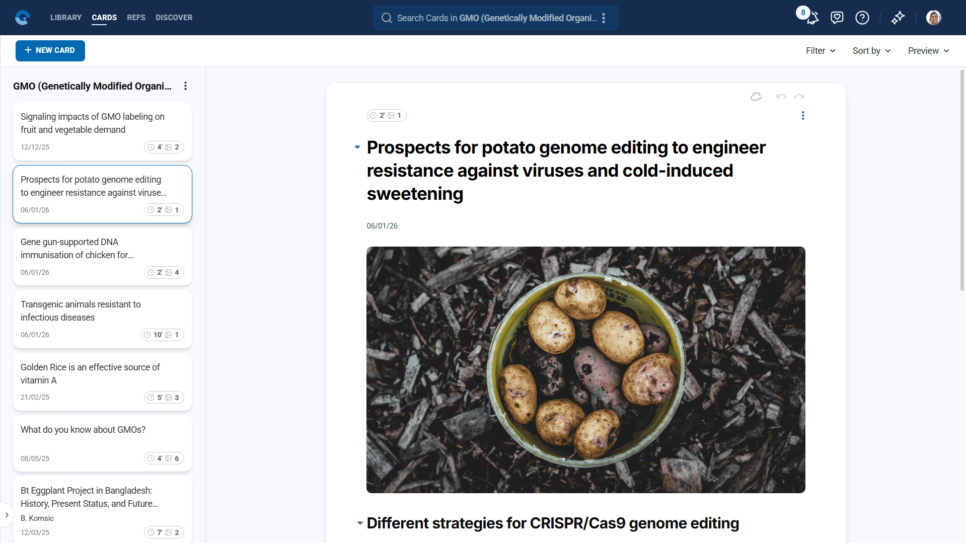 - Right Sidebar: Integrated Cards panel for real-time knowledge extraction