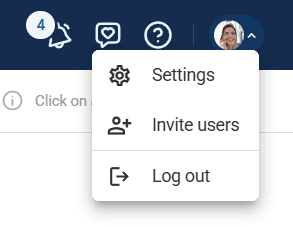 - User Menu: Profile settings, user invitations, and logout options