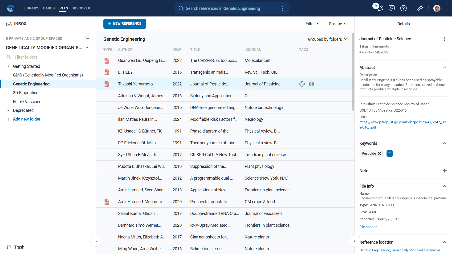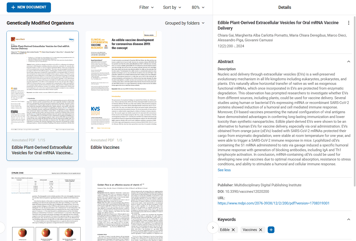 - Document Details: Name, abstract, DOI, URL, keywords, notes