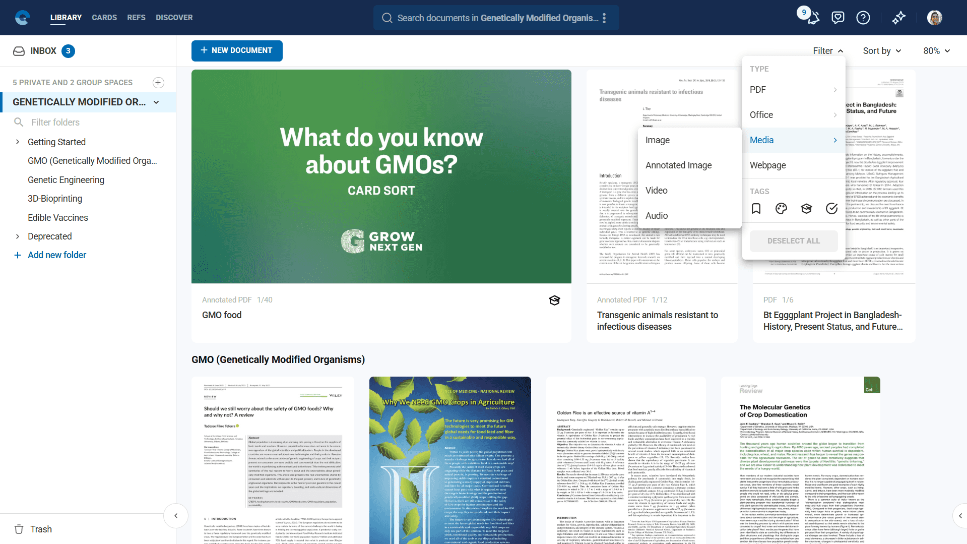 - Bulk Operations: Multi-card selection for organizing and sharing