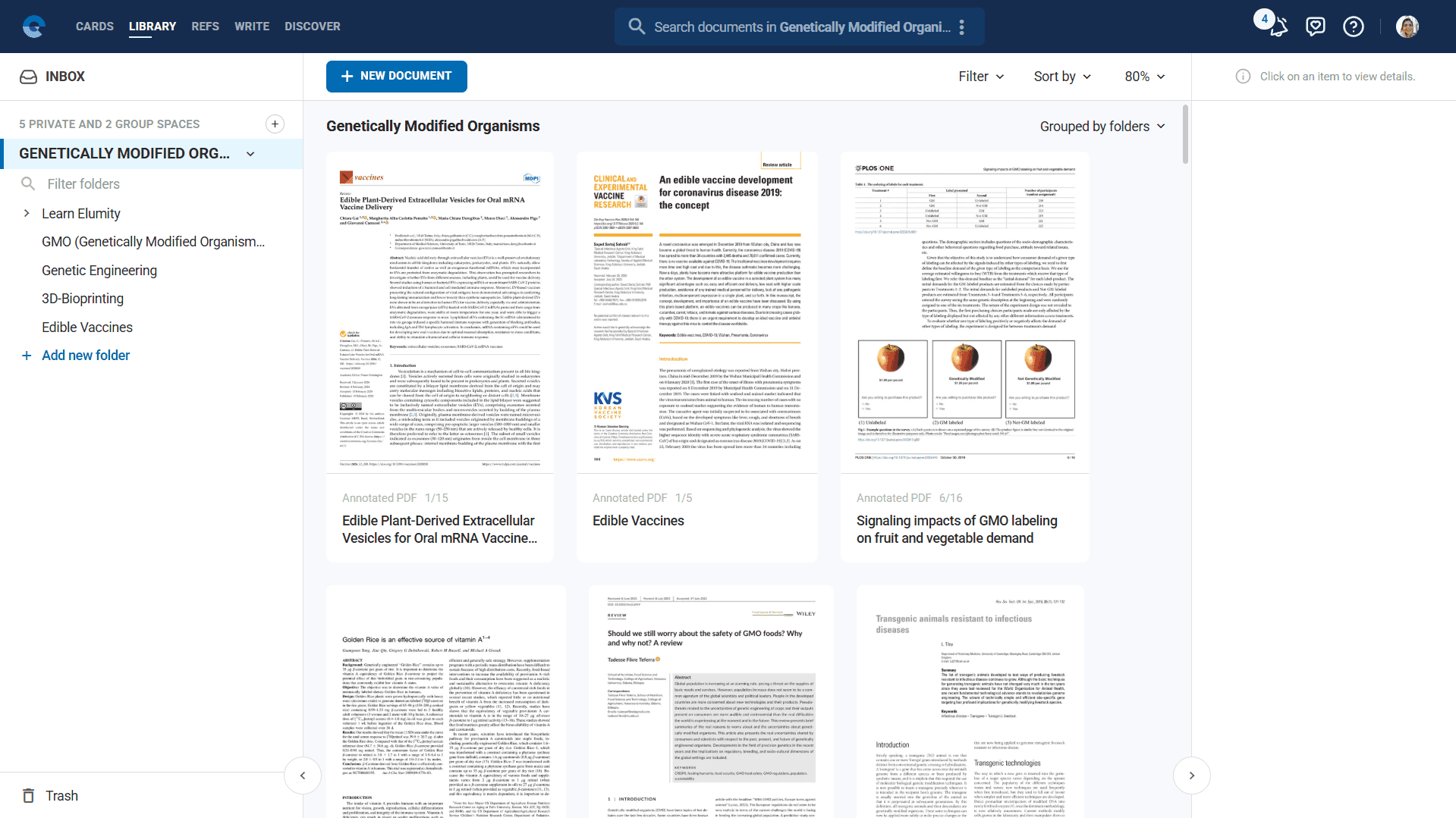 The Library serves as your document command center with sophisticated organization and management tools.