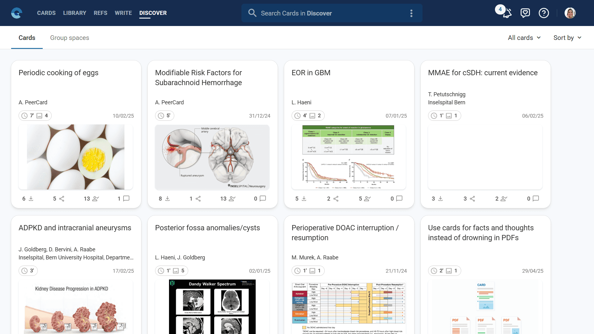 Beyond individual cards, Discover includes a Group Spaces section where you can find collaborative research environments open to new members.