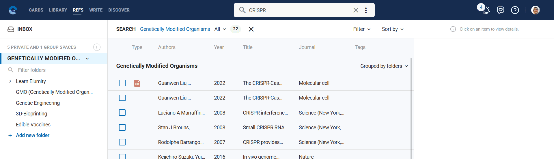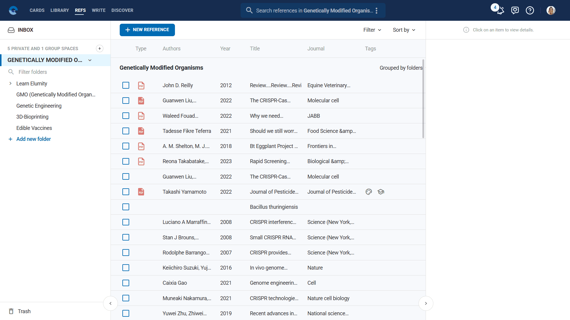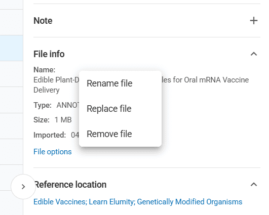 References follow the same organizational structure as your other Elumity content, using spaces and folders to create logical groupings that match your research workflow.